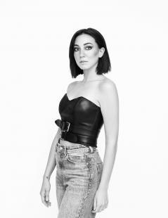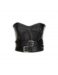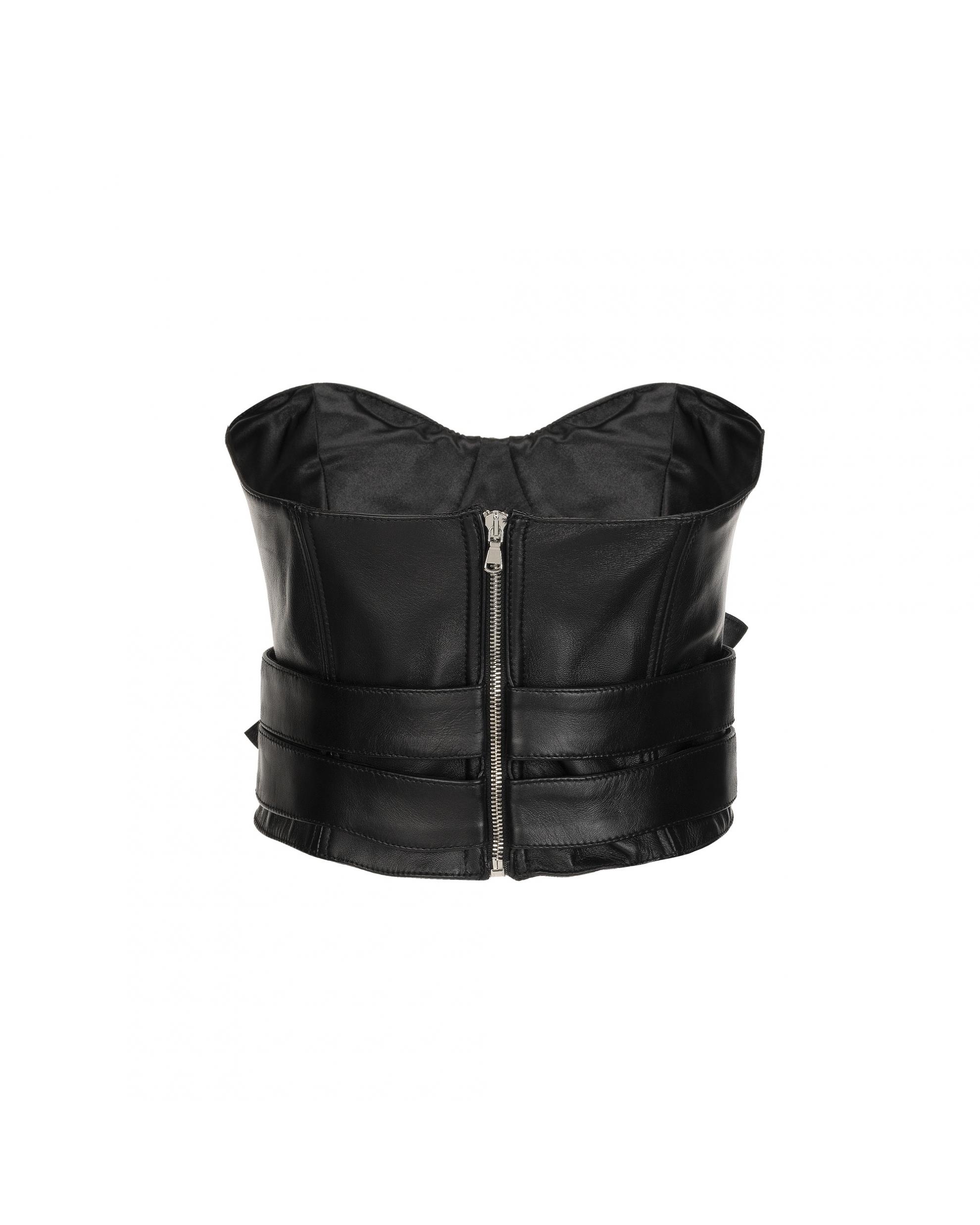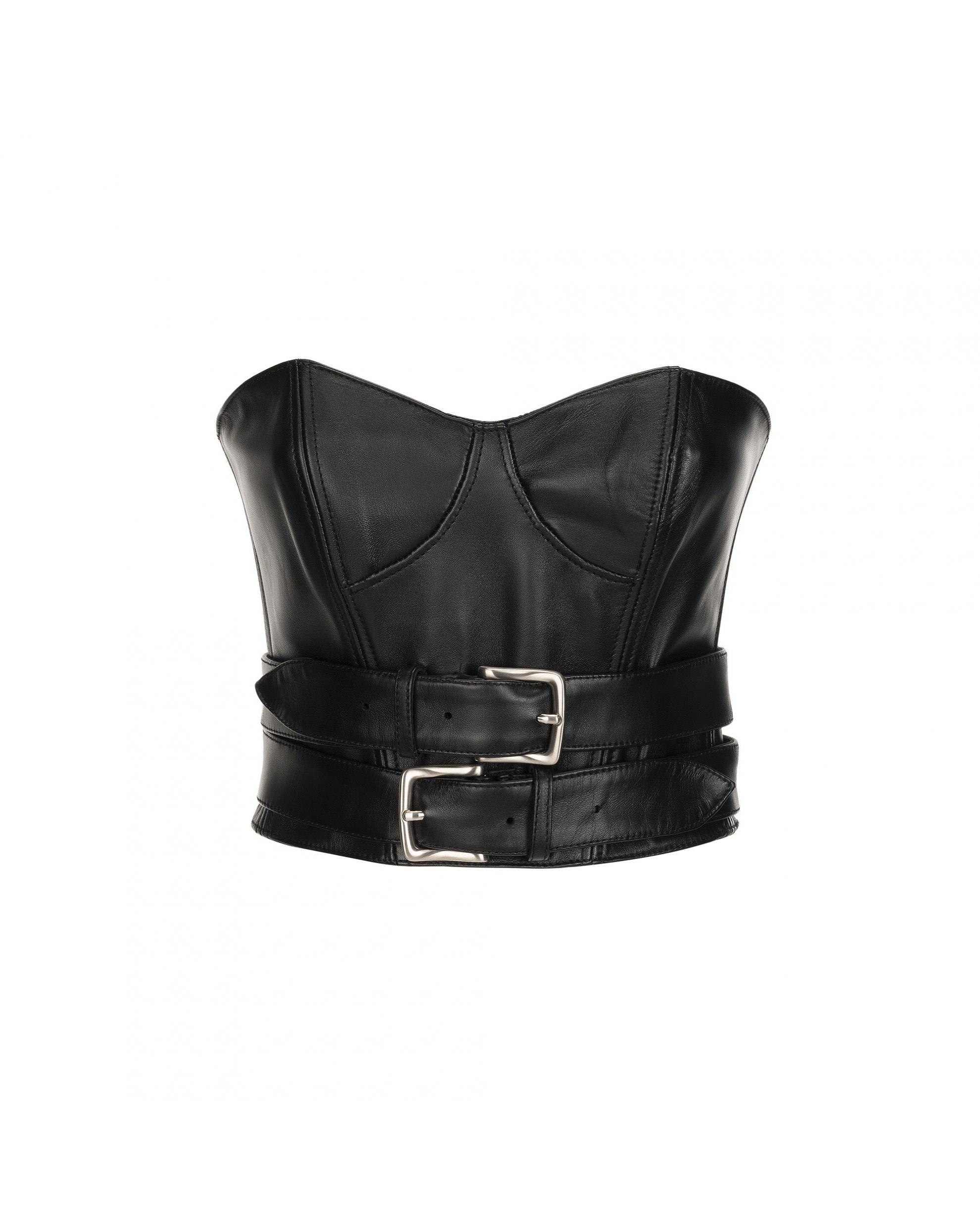 bustino crop-top steccato in vera pelle con doppia cintura