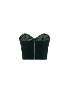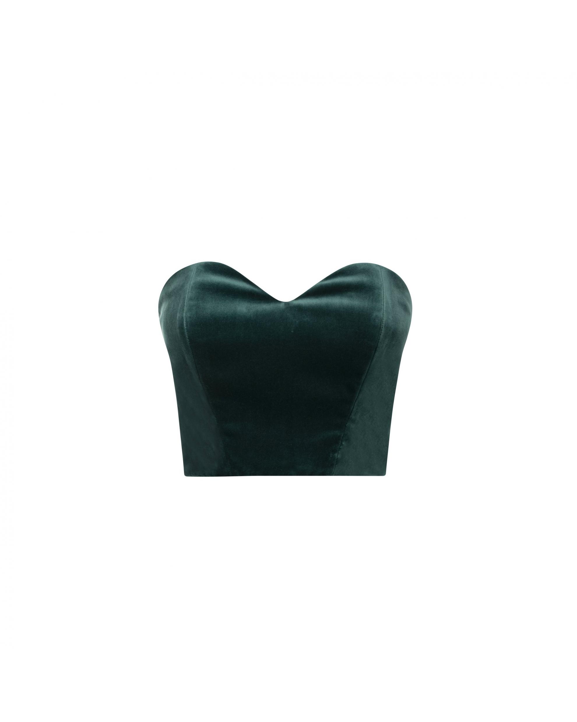 bustino crop-top di produzione artigianale in velluto liscio di cotone, steccato, foderato, scollo a cuore, asoline su fodera interna, spalline sganciabili regolabili, chiusura con zip metallica sul retro